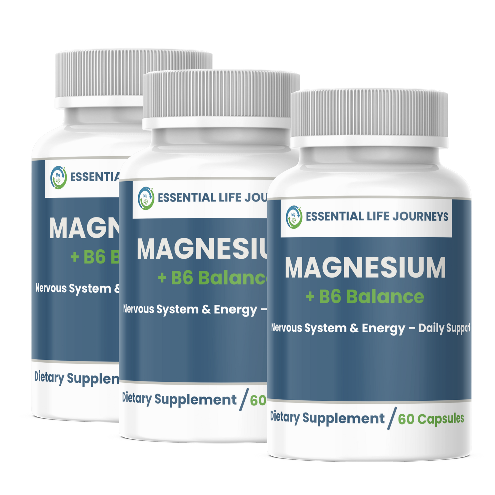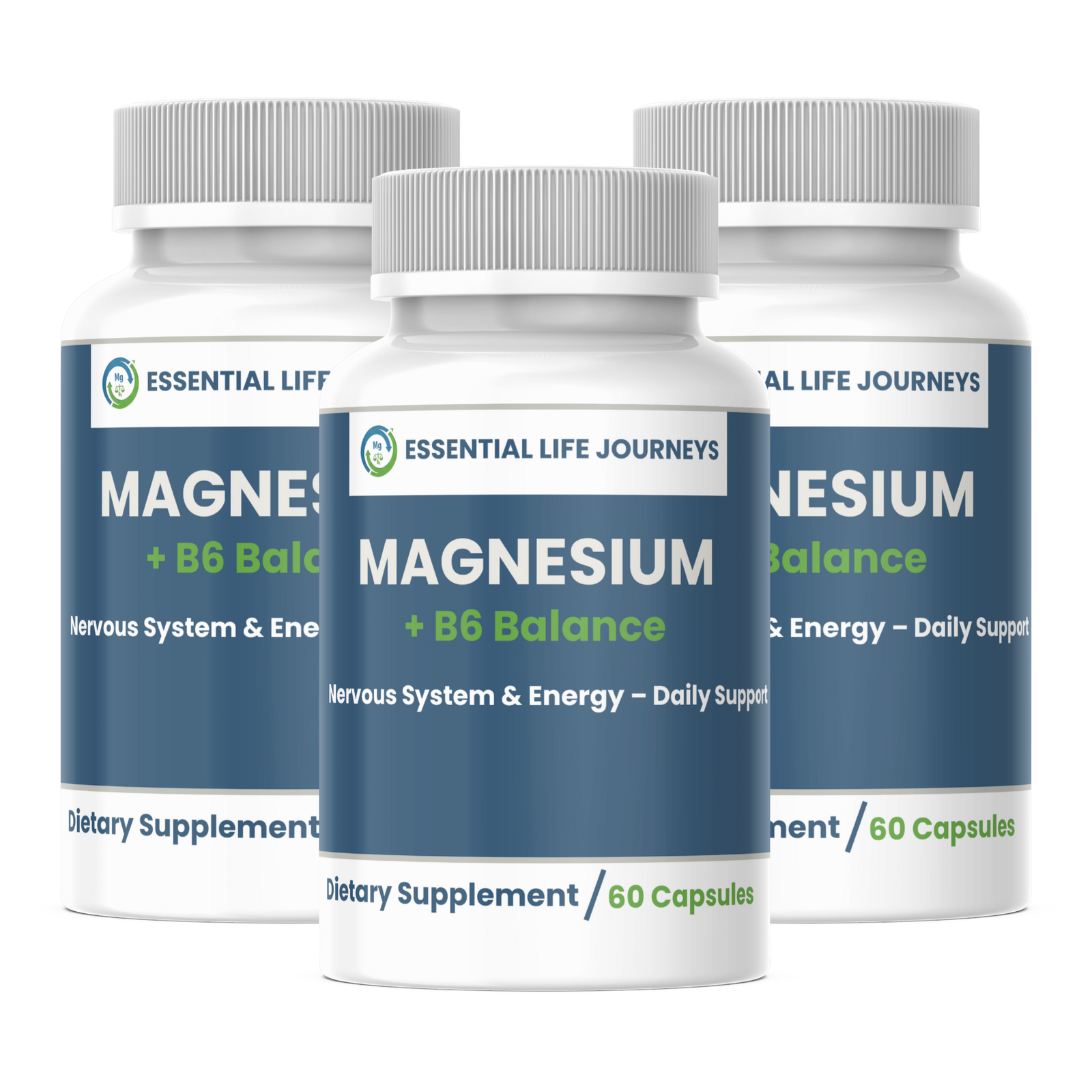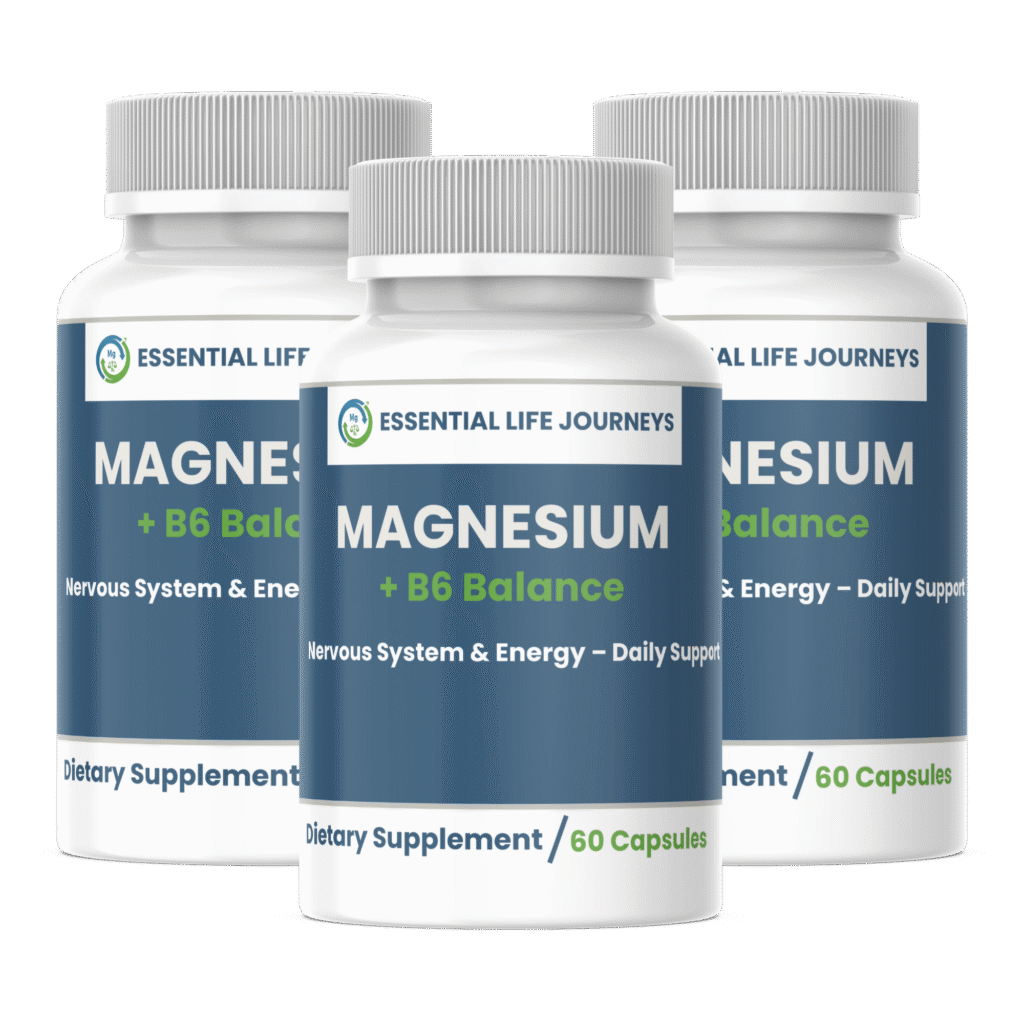 Essential Life Journeys Magnesium + B6 Balance offers a science-backed approach to daily wellness. This synergistic blend may help support stress management, nervous system function, and healthy energy levels – providing essential nutritional support for your body and mind.