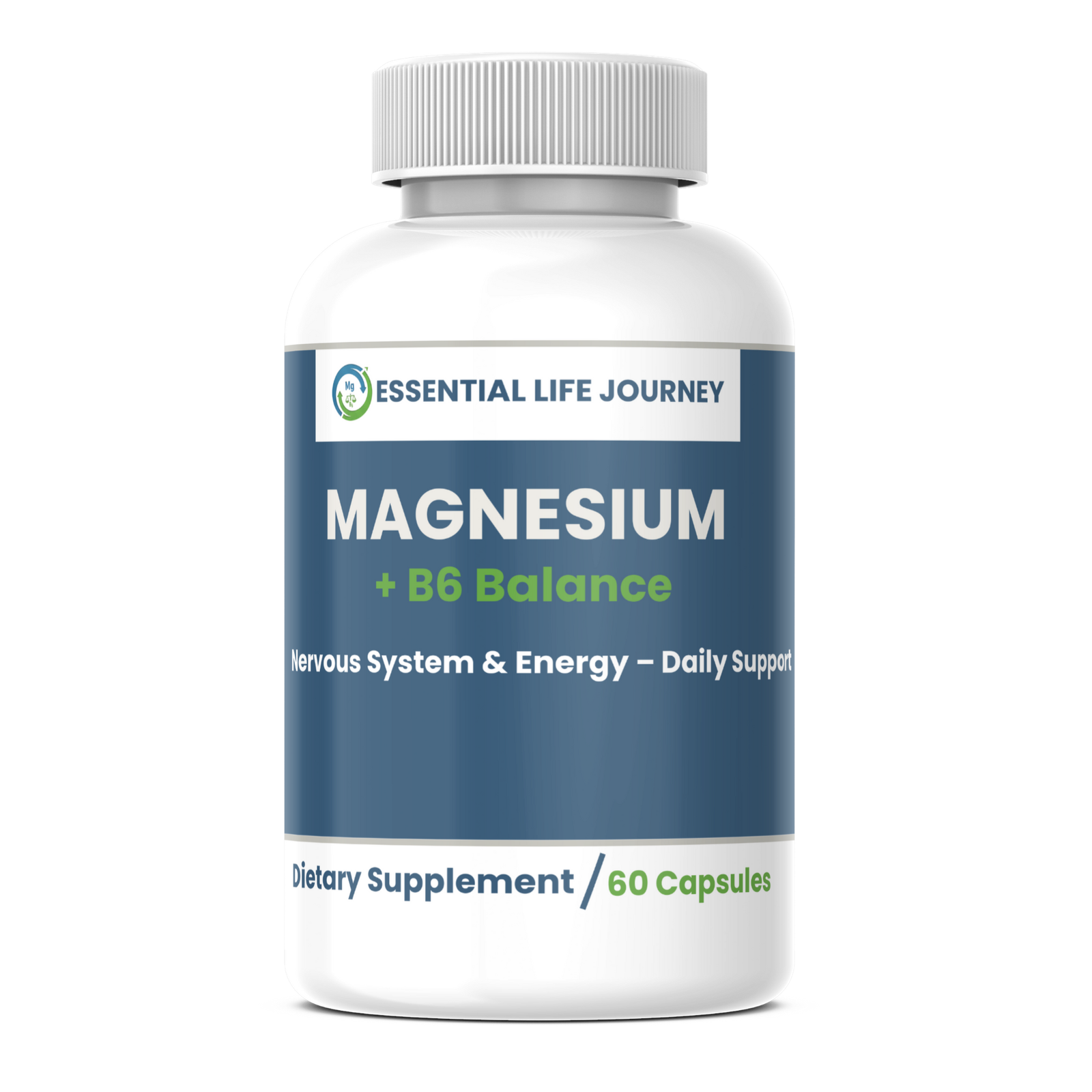 Essential Life Journey Magnesium + B6 Balance (60 Capsules) is designed to support daily nervous system health and natural energy production. Each capsule provides an optimal combination of Magnesium and Vitamin B6, helping you maintain calm focus, manage daily stress, and sustain healthy energy levels throughout the day.